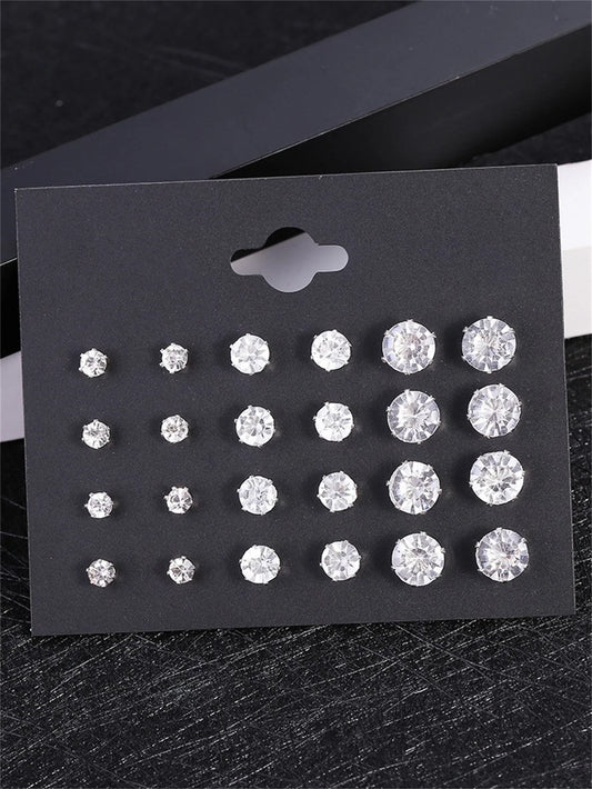 New 12 Pair/Pack White Shiny Wedding Stud Earrings Set For Women Men