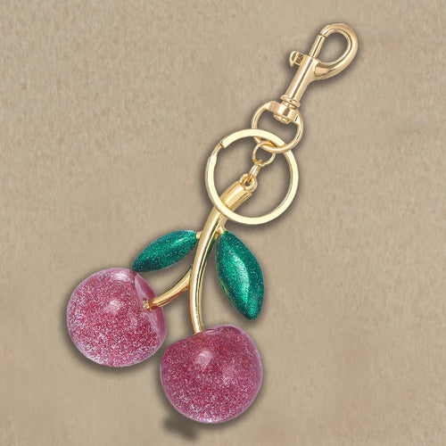 Delicious Red Fruit Crystal Cherry Pendant Keychain Suitable for Coach