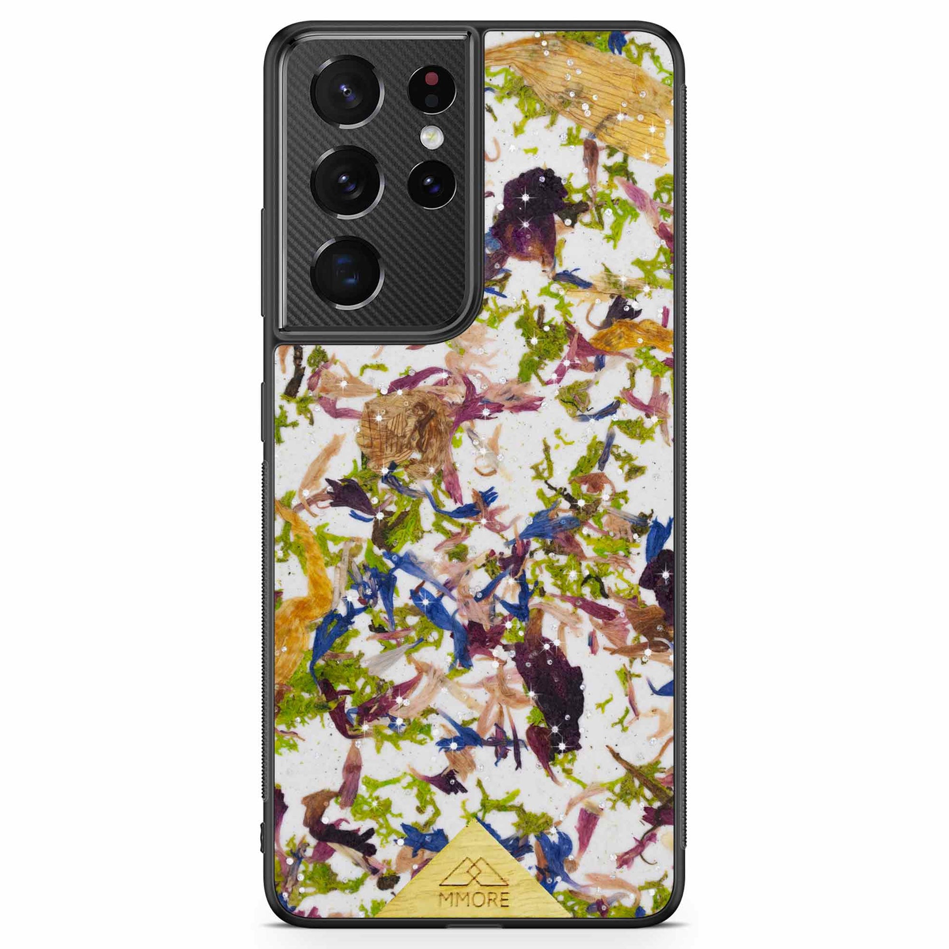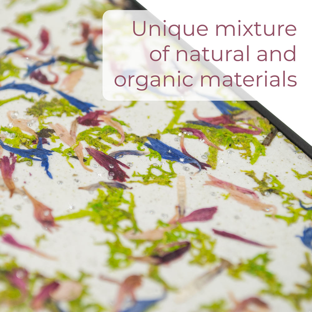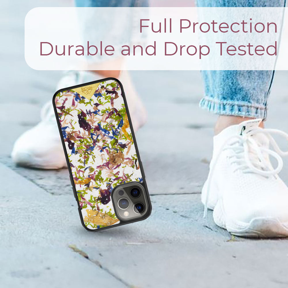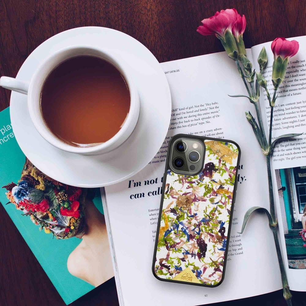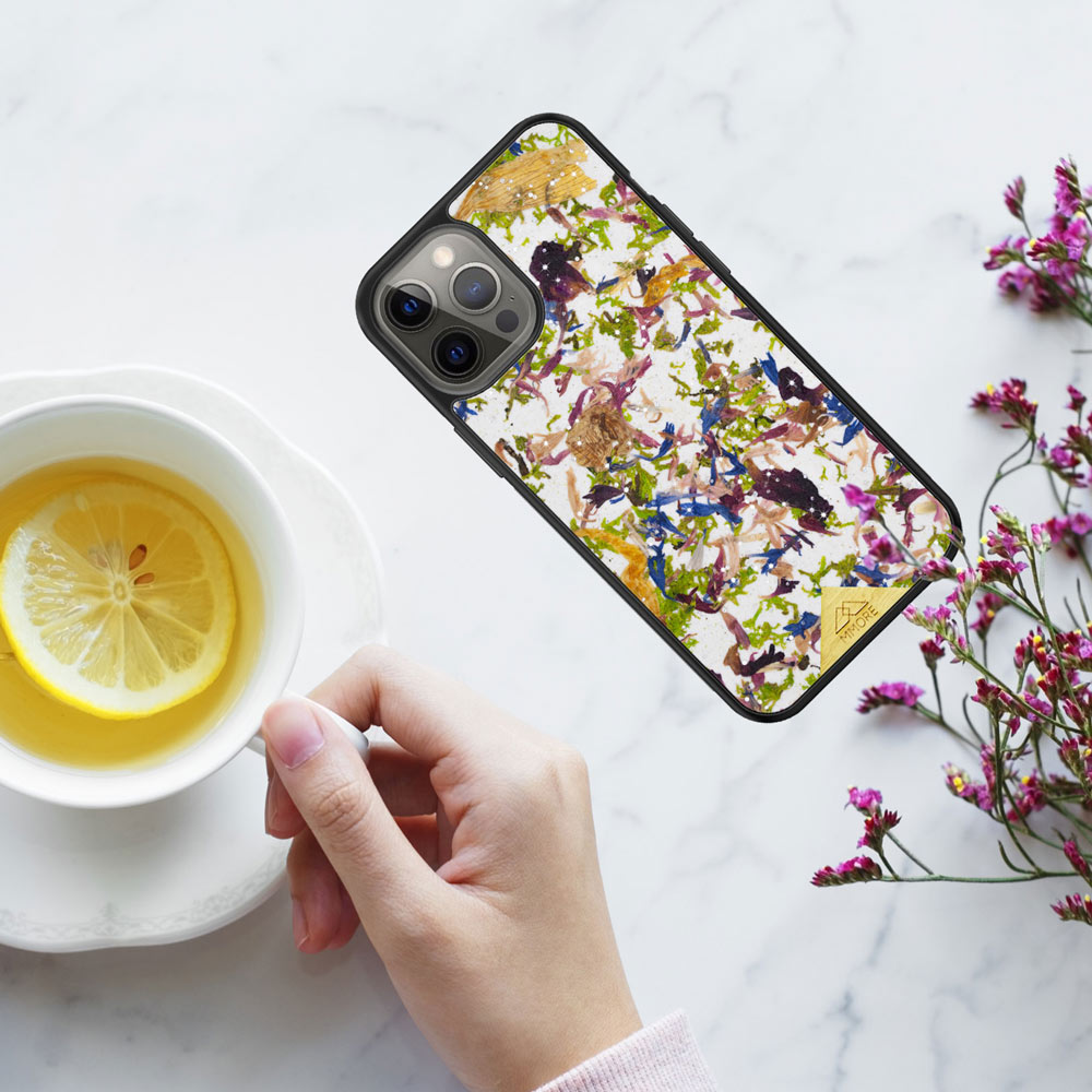 Our Crystal Meadow Phone Case is a combination of our favourite meadow flowers that bring a special splash of colours to the case, but in the meantime, the natural Kraft paper that they are placed on neutralizes and combines them into a beautiful natural organic material. The Swarovski Crystal Meadow is a perfect phone case for all nature lovers. It is also an amazing sustainable and Eco-friendly option for your everyday phone case.
